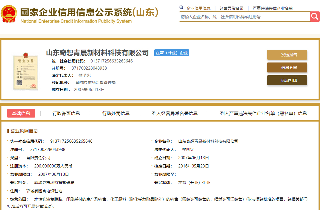 山東奇想青晨新材料科技有限公司